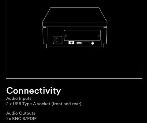 Kompakter UPnP-Musikserver mit Einbaurahmen für optionale HDD/SSD, USB-Anschluss für USB-Festplatte und Digitalausgang für direkte Wiedergabe