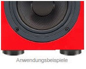 Besonders bei vibrationsanfälligen Stell-flächen wie Glas, dünnes Holz oder Metall empfiehlt sich der Einsatz von Damp it. Platzieren Sie Damp it unterhalb der Lautspre-cher und den Original Gerätefüßen und hören Sie sofort den Unterschied: Wenn Regallautsprecher und Plattenspieler gleichzeitig mit Damp it ausgerüstet sind, so spielen Sie bis zu 30% lauter ohne jede Rückkopplung.