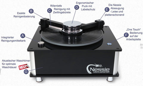Die Nessie Vinylmaster ist eine Plattenwaschmaschine höchster Qualität. Ihre Schallplatten werden deutlich störungsfreier und vor Allem feiner klingen! Sie ist flüsterleise und spart Zeit und Nerven durch hohen Automatisierungsgrad.